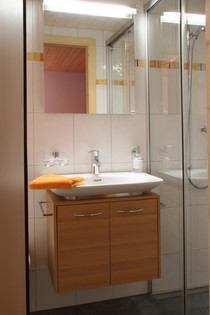1 kleines Bad mit Dusche/WC im Zimmer Wetterhorn